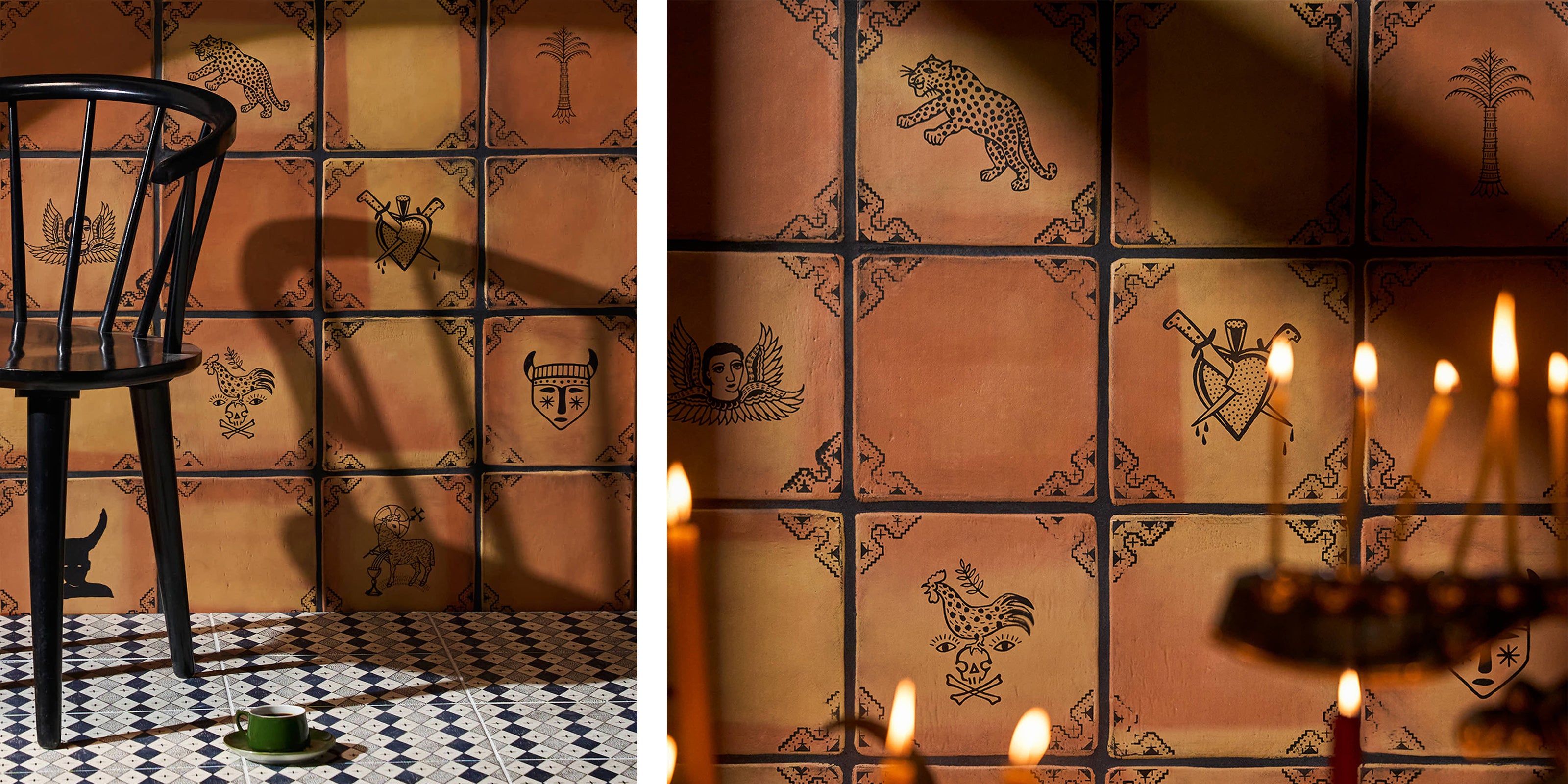 His artistry flows seamlessly into the world of tile, where saints and sinners coexist and where art merges with design. Blending historical, cultural, and sacred influences, Pauly creates a style that is unmistakably his own.