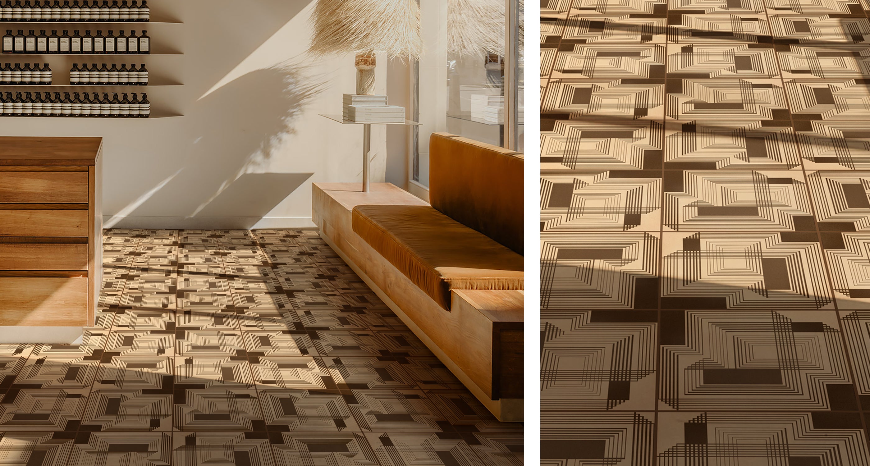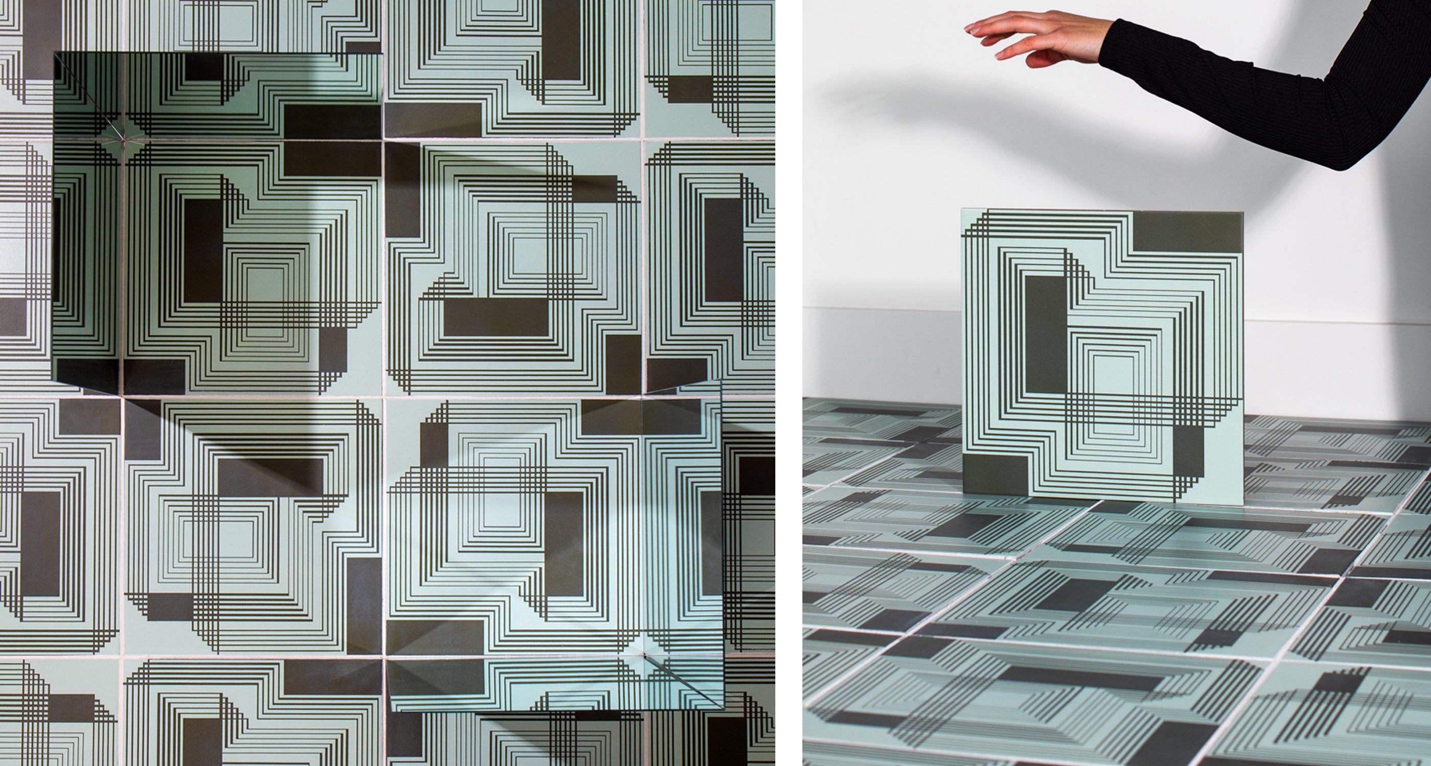 Our ETO tile transforms any surface into an evocative, geometric statement piece. This tile celebrates layered linear design with its mid-century inspired pattern formation that creates a crisp design when laid out.
