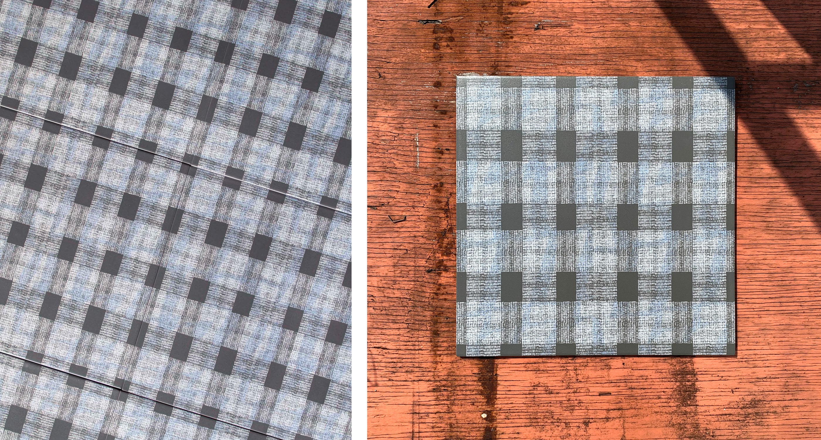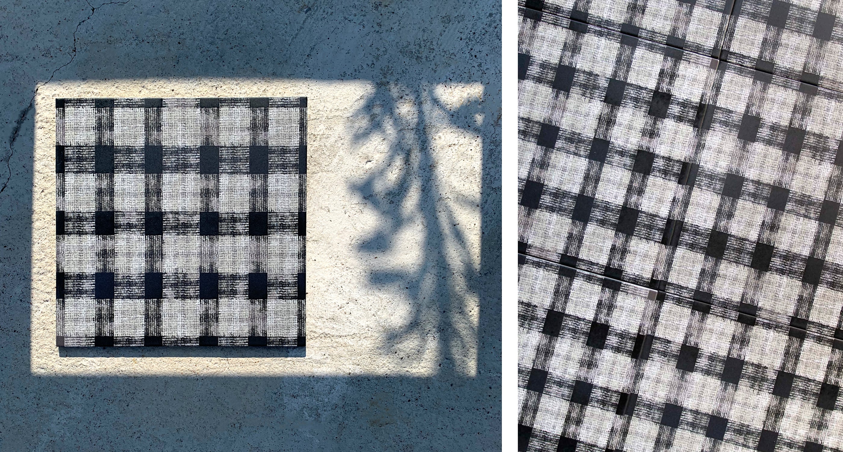 GINGHAM is a beloved pattern for its classic, bold, and checkered look. Marrying the solid material of the tile with a familiar pattern adds dimension and an etched thread-like texture to your indoor or outdoor area.
